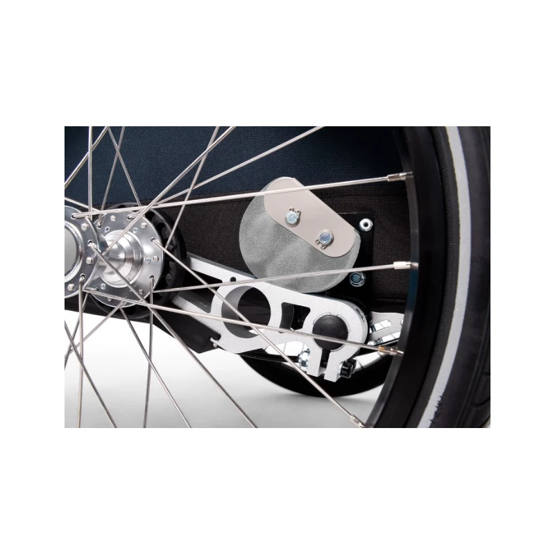 Elle est également dotée de roues 20 pouces pivotantes pour un confort otimal, ainsi que de freins pour une sécurité accrue. La remorque est facile à installer et à plier, et se replie en quelques secondes pour un rangement pratique.