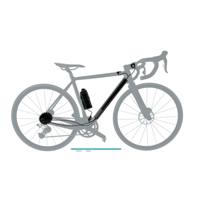 Le kit est composé d’une batterie Panasonic de 36V 210Wh logée à l’intérieur d’un ensemble bidon/porte bidon pour assurer une discrétion maximale de la partie électrique.