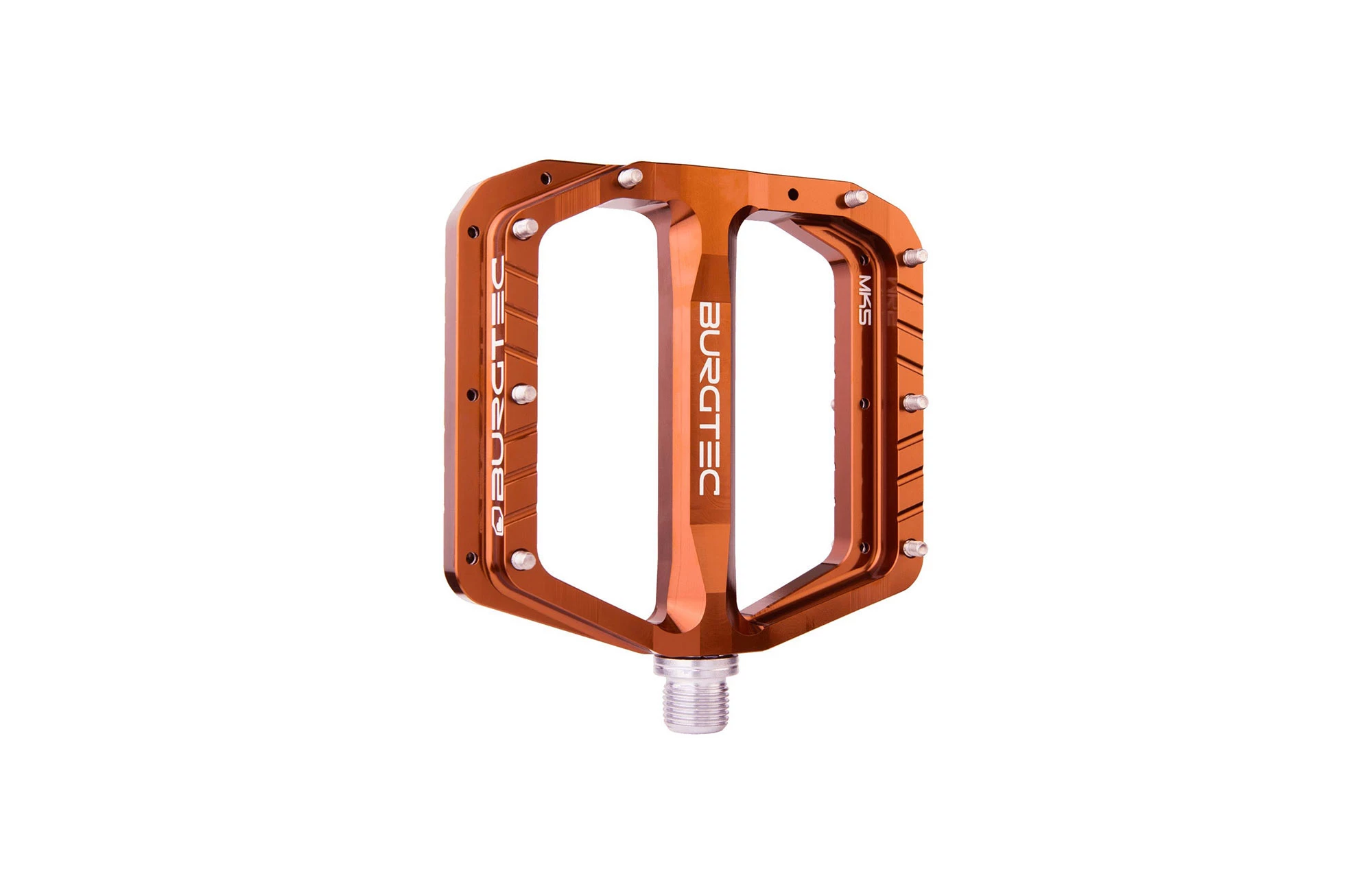 - |Description| La PENTHOUSE FLAT MK5 représente ce que BURGTEC fait de mieux. Légère, dotée dun grip à toute épreuve et dune belle solidité, elle fait partie des meilleurs modèles du marché.Cette pédale a fait lobjet dun long développement et de nombreux tests auprès des riders. La plateforme large et concave permet un calage optimal du pied sur les phases dappui tout en offrant une position naturelle. La réduction du diamètre de laxe et lajout de composants internes plus résistants ont permis daugmenter la taille et la concavité de la plateforme.Question grip, on peut compter sur les 8 picots par face en acier inoxydable pour un maintien on ne peut plus performant. Cela ajouté à la forme concave, la sensation de sécurité est tout simplement exceptionnelle. Ces picots sont amovibles et interchangeables en cas de casse ou dusure.Nous proposons ces pédales dans les coloris suivants : Black, Rhodium Silver, Purple, Gold, Race Red, Kash Bronze, Iron Bro Orange, Deep Blue, Toxic Barbie Pink.