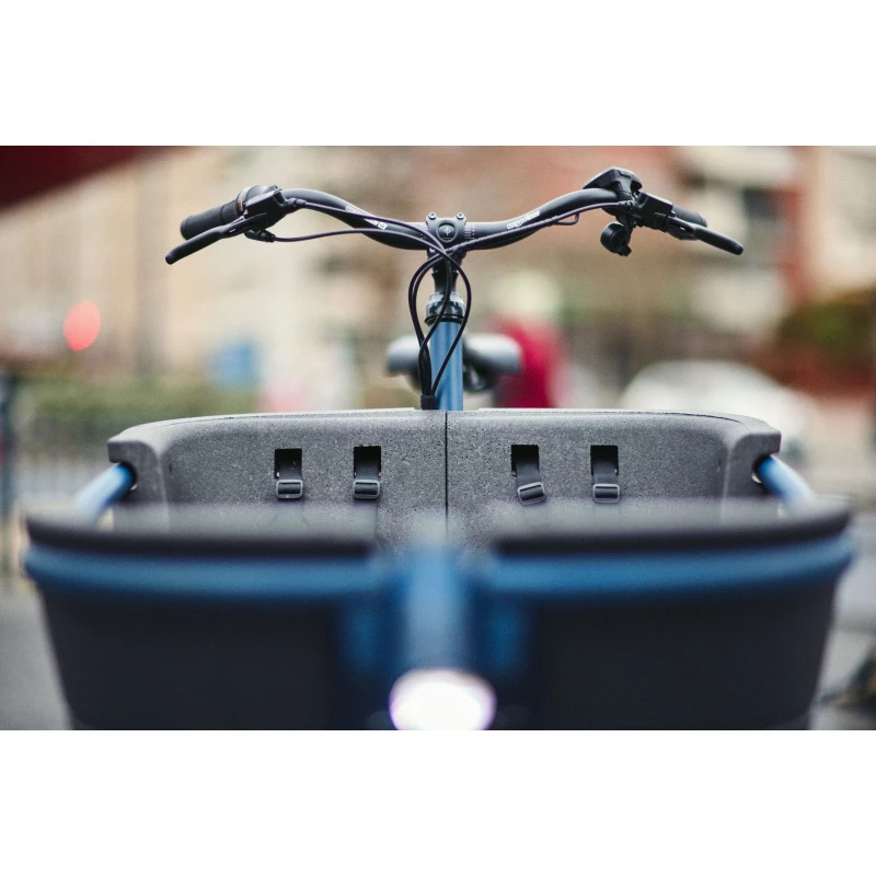 Avec ses deux roues, ce vélo permet de transporter jusqu’à 200 kg de poids et offre de l’espace avec beaucoup de confort pour deux enfants en plus de maman ou papa. Le coffre confortable en mousse dure écologique est équipé d’une protection contre les chocs latéraux et de ceintures de sécurité à l’intérieur.